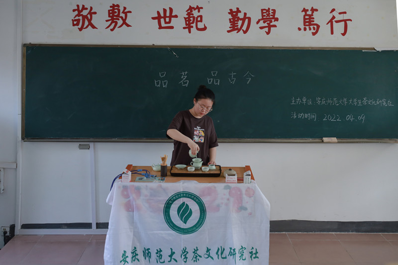 “我们这次活动采用的茶是六安瓜片。”本次活动负责人之一蒋晓璇介绍,六安瓜片是绿茶特种茶类,安徽省历史名茶的一种,叶片较大,更适合初学者冲泡。“就拿公道杯来说,我们在斟茶前要把茶水从茶壶倒入公道杯,之后再倒入品茗杯,有便于分茶。”同时,她也简单介绍茶艺中蕴含的中华文化,“公道杯寓意不偏不倚、一视同仁的公道精神,使得匀汤分茶不再为人情所难,从而达到茶德思想上的‘和敬’之美。”