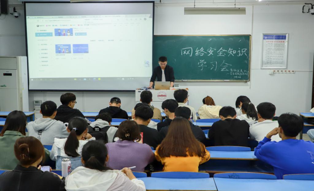 高薪兼职骗局、钓鱼网站诈骗、木马软件病毒……主讲人乔海峰以揭露网络安全陷阱为切入点,结合具体实例对网络中可能隐藏的危险进行了解读,联结热点问题对安全知识进行了宏观介绍。同时,针对大学生普遍关注的电信诈骗问题,乔海峰还给出了安全防护措施。“站在大学生的立场上,我为同学们分享了个人信息保护、警惕一夜暴富等一系列贴合度高、实用性强的防护措施。”为了增强安全宣传的趣味性,现场还播放了动画宣传视频,由点及面地向学生们普及网络安全知识。
