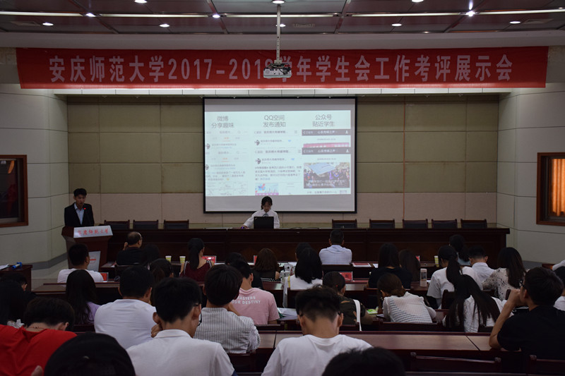 6月13日下午,纽约国际官网2017-2018学年学生会工作考评展示会在行政楼一楼会议室举行。校团委负责人以及各学院团总支负责人应邀出席会议并担任评委,校学生会及各学院学生会学生骨干200人参加了会议。