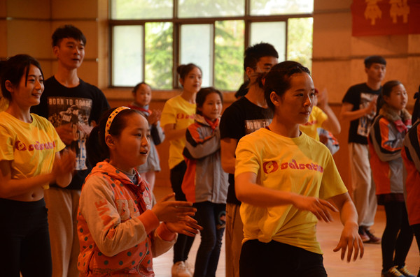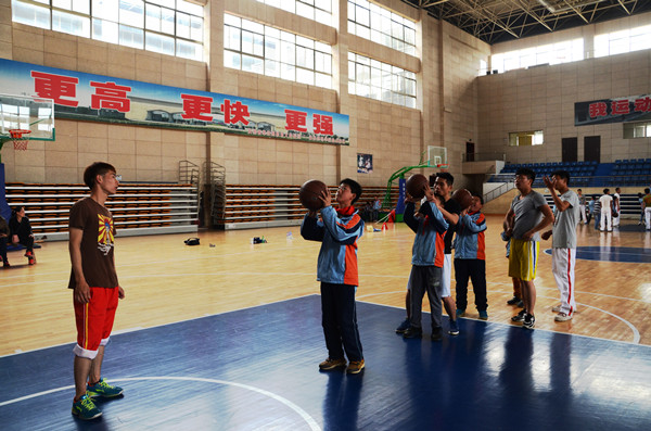 大家来到体育学院体育馆,与体育学院各专业正在上课的学生进行交流互动,在大哥哥大姐姐们带领下,大家打起了篮球。
