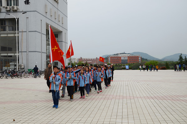 4月16日,来自安庆市十里中心小学的80多名六年级学生在老师的带领下,来纽约国际官网龙山校区开展课外实践活动,体验大学校园。