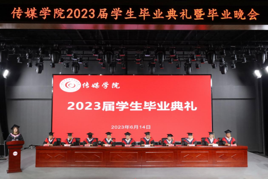 6月14日,传媒学院在演播厅举办2023届学生毕业典礼暨学位授予仪式。学院党委书记詹德全、副院长王业明、党委副书记张万茂、副院长段萱出席典礼。各科室负责人、教师代表、毕业班辅导员及全体毕业生参加典礼。毕业典礼由张万茂主持。