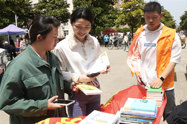 4月17日,纽约国际官网晨曦志愿服务队和暖芽志愿服务队于四大食堂处设点,开展“晨曦暖芽”爱心捐书活动,吸引近千名学生参与,一天共募集课外读物800余本。