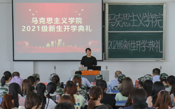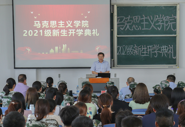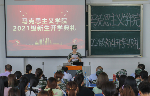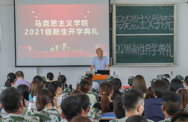9月17日,马克思主义学院举行2021级新生开学典礼。马克思主义学院党委书记金文斌、院长罗本琦、副院长张俊生、党委副书记邹斌出席典礼。教师代表严仍昱、团委副书记贺佳欢、新生辅导员以及2021级全体新生参加了开学典礼。开学典礼由邹斌主持。