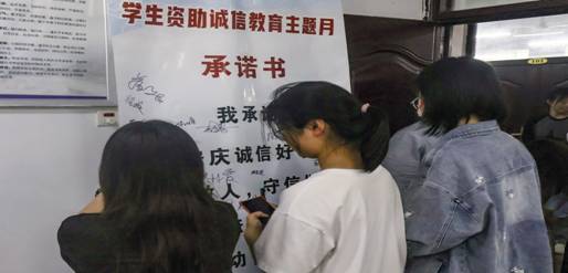 “个人信用报告是个人的什么?”“经济身份证!”“大学新生申请助学贷款是在什么时间段?”“7月15至9月1日”……在有奖问答环节,银行工作人员抛出了12道题,学生们积极举手回答。活动最后,学生们主动在诚信承诺书上郑重地签下了自己的姓名。