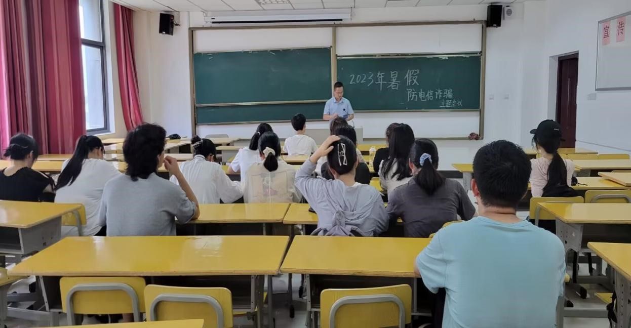7月5日,学院在I401教室召开2023年暑期留校学生防电诈宣传会,学院党委副书记彭芳珍、团委负责人、辅导员以及全体暑期留校学生参加会议。彭芳珍传达了学校防电诈安全会议精神,通报了校院两级电诈案发生情况和电诈案典型类型与案例,要求同学们要进一步增强防范意识,警惕电诈风险,切实做好防电诈等各类安全防范。留校期间要遵守校规校纪,服从学院管理安排,离校时要履行相关手续并及时告知老师离校去向。
