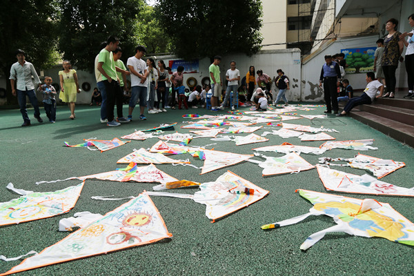 每个孩子在一个家长和志愿者的陪同下,徒步前往安庆市体育馆广场。志愿者服务队成员们耐心地为自闭症儿童们讲授放风筝的诀窍。在确保安全的前提下,自闭症儿童开始放飞自己制作的风筝。一个个绘画着太阳、花朵、蝴蝶、波浪、爱心等图案的风筝将天空点缀。