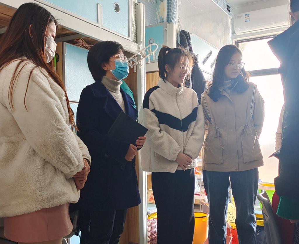 会后,彭芳珍带领专兼职辅导员深入学生宿舍走访调研,学生们热情的向学院领导老师介绍宿舍情况,并分享了她们充实而又快乐的寒假生活。老师们也询问了同学们的学习情况以及新学期的学习计划和目标,并嘱咐他们在日常生活中要做好疫情防控,及时参与学校安排的免费核酸检测,在学习上要以更加饱满的热情去迎接新学期、新课程,上好每一堂课,学以致用,学有所成。(撰稿、摄影:黄兴强    编辑:江伟     审核:彭芳珍 钱敏)