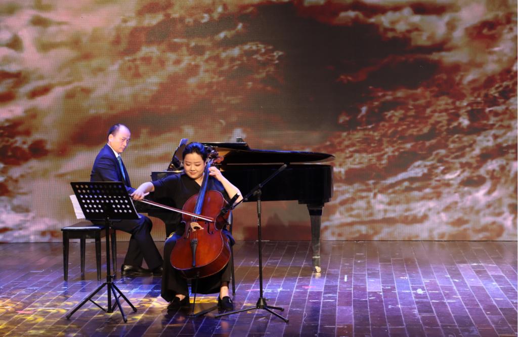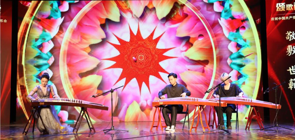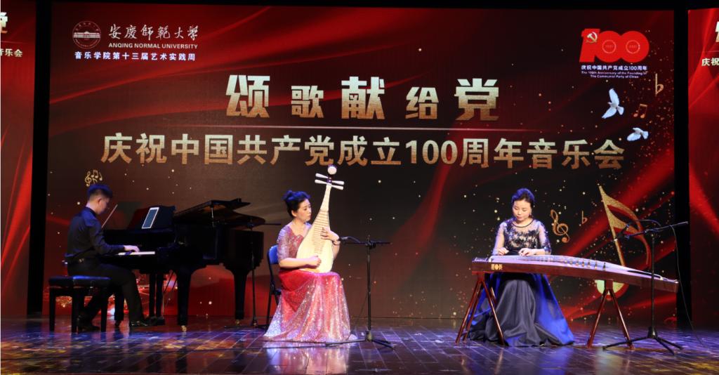 “唱支山歌给党听,我把党来比母亲……”古筝、琵琶、钢琴合奏的表演形式为歌曲《唱支山歌给党听》注入新的活力。唐彦春老师、丁洁老师和陈一冉同学合作默契,弹奏声或轻缓舒适,或急促铿锵。“我们之间配合度很高,歌曲最终的完成度的很好。音乐是可以传递情感的,我们也希望通过我们的演绎表达对祖国繁荣昌盛的赞美。”丁洁说。