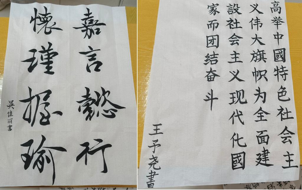 应用统计学2021(1)班的李剑之表示:“从他们的参赛作品中,可以看出大家对毛笔字的兴趣与功底,书法是中国传统文化的瑰宝,毛笔字极具魅力,可以陶冶当代大学生的心灵和情操。”(撰稿:李升雪    摄影:宋婉滢    编辑:江伟     审核:彭芳珍 赵丽丽)