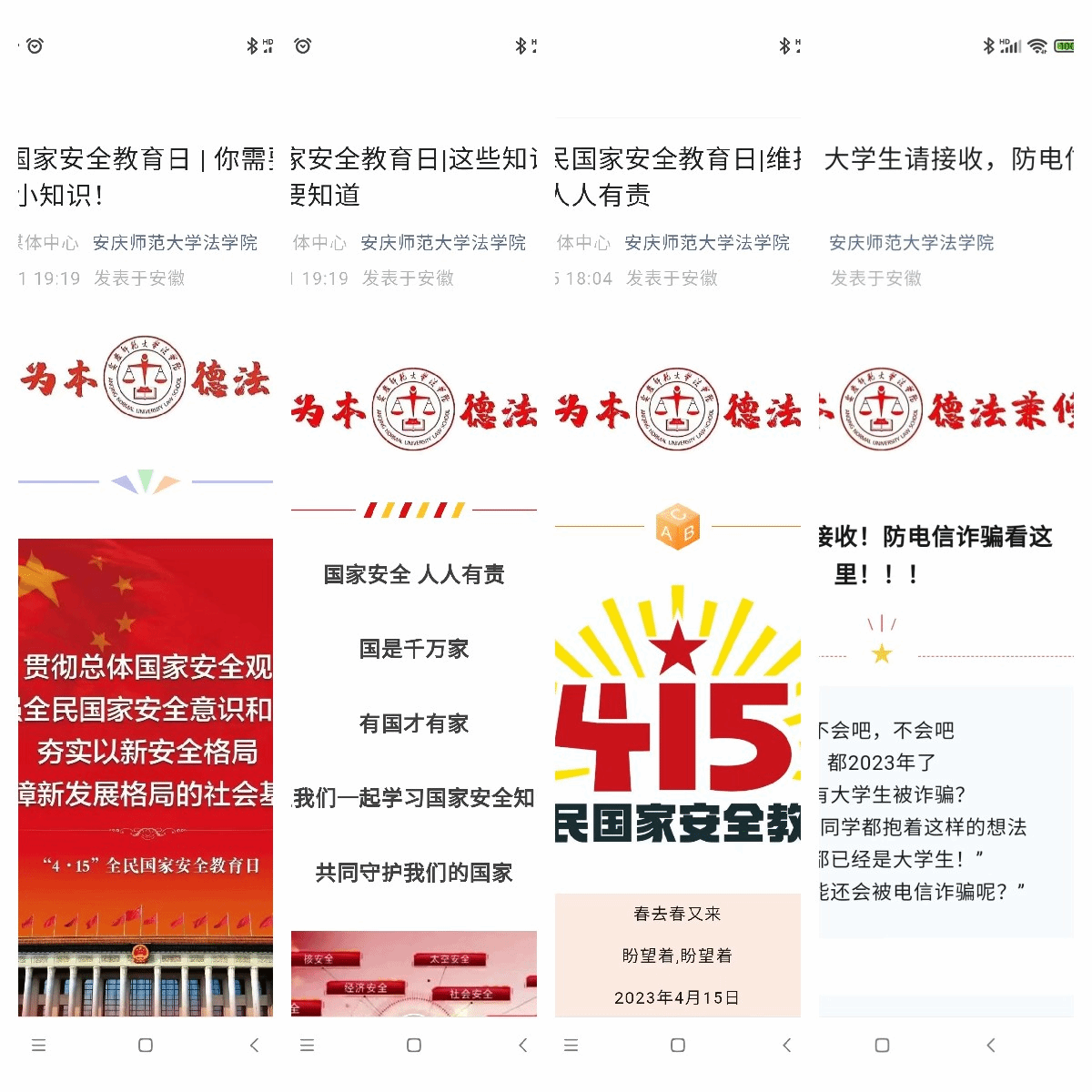 在第七个“全民国家安全教育日”来临之际,法学院通过多种形式,开展学生安全教育主题活动,提高广大学生的安全意识,筑牢安全防线。