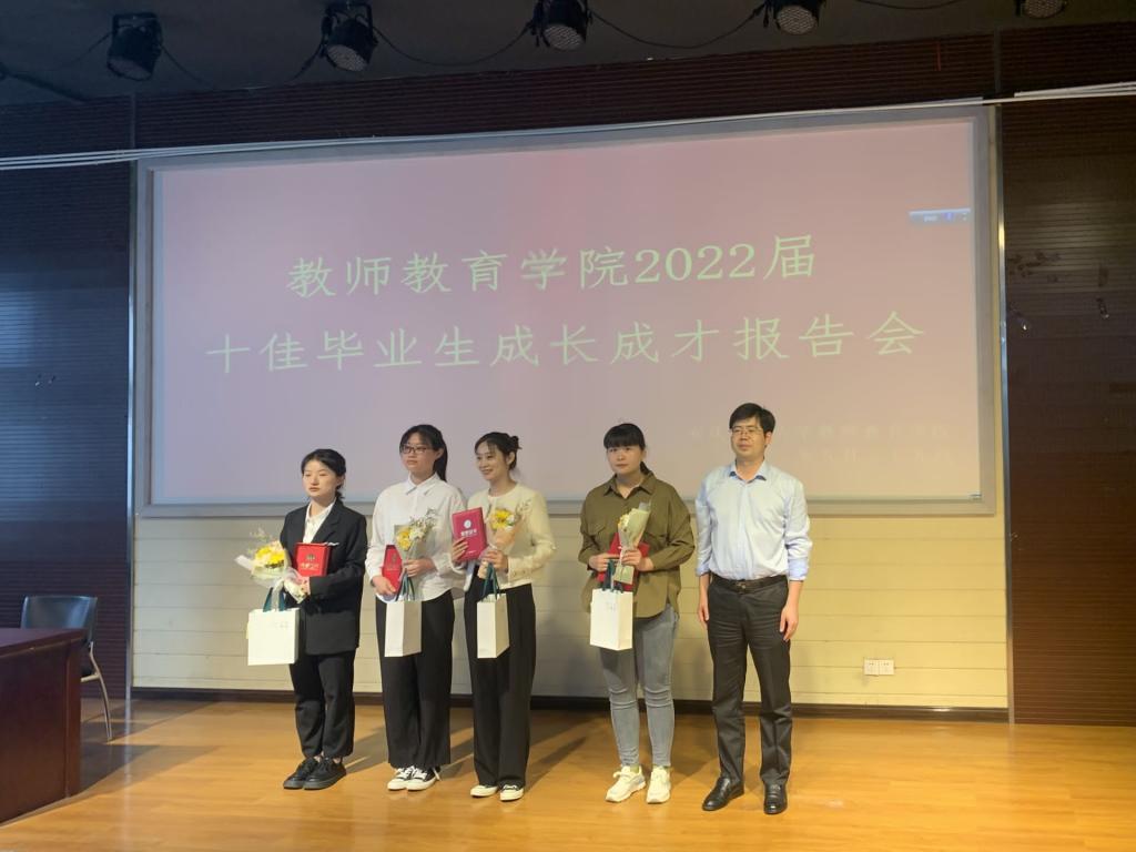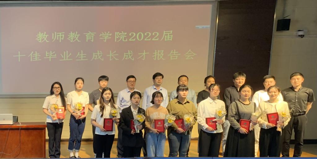 “相逢又告别,归帆又离岸”5月29日,教师教育学院教室举办2022届“十佳毕业生成长成才报告会”,大力宣传大学生先进典型,加强学风建设,激励广大青年学子奋发进取、立志成才。学院党委书记陈志超、副书记许世平、副院长王皓宇、相关4名辅导员出席会议。