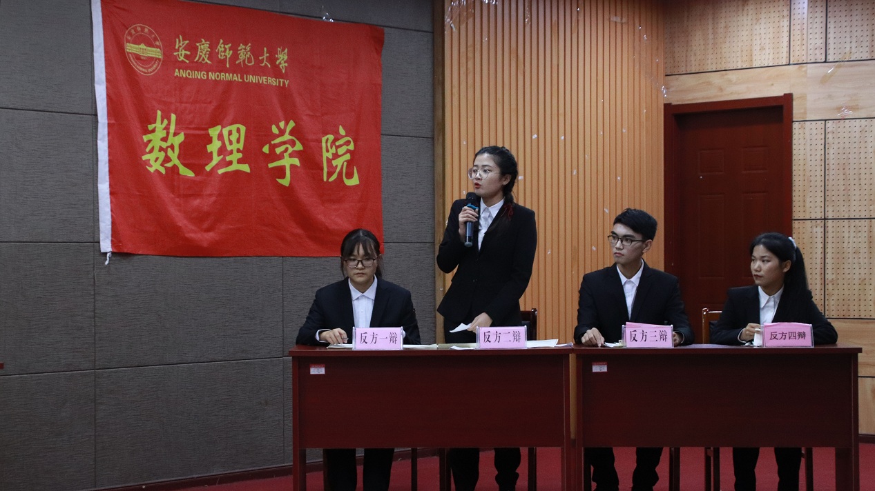 比赛第一轮是季军争夺赛,一场以“懂得坚持和退让哪一个更伟大”为论题的辩论正式开始。正方率先举例论证,“破釜沉舟、百二秦关终破楚、卧薪尝胆、三千越甲可吞吴”,引经据典阐述坚持的意义。随后,反方辩手立刻抓住对方立论的漏洞,对“矛盾激化时双方懂得退让会使事情更糟糕”提出质疑,并巧妙地运用特朗普的坚持导致新冠病毒攻陷美国的事例进行有力的反击。在盘问环节中,双方针尖对麦芒,交锋激烈,现场掌声不断,气氛热烈。经过一场激烈的角逐,第一场比赛在数学类专业2020(6)班“你不队”夺得季军中落下帷幕。