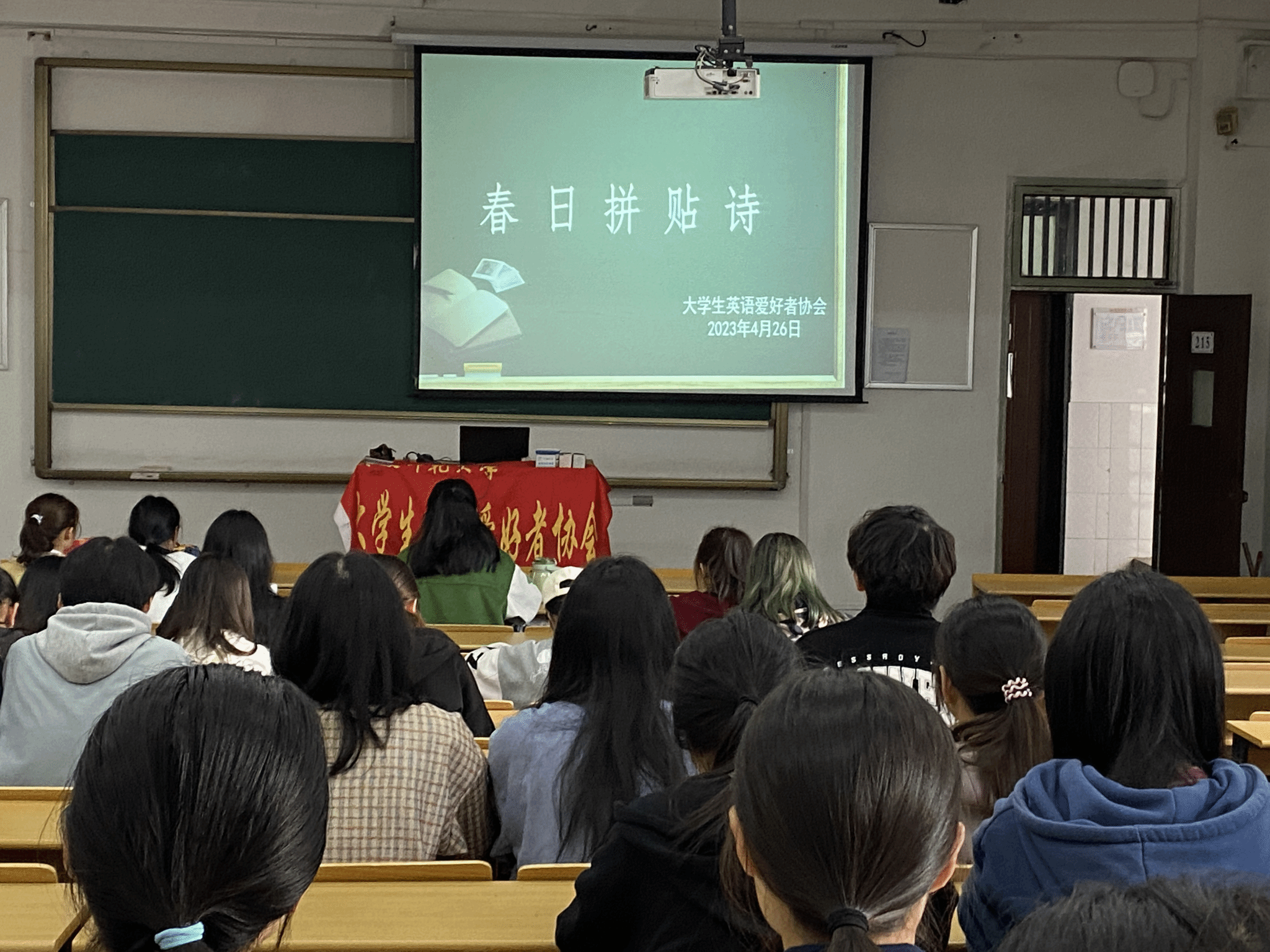 4月26日,大学生英语爱好者协会在菱湖校区教室210举办“春日拼贴诗”活动,带领同学们感受春天的美好诗意。