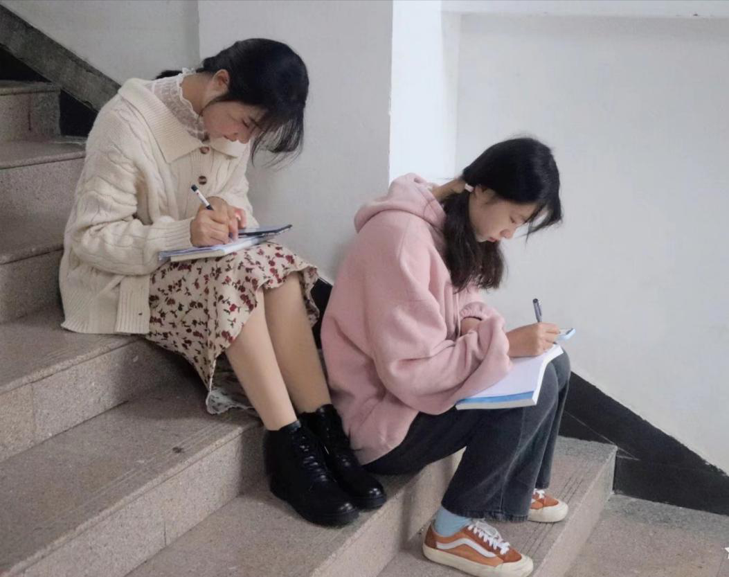 楼梯上写稿、看台上吃饭、经常穿梭在场内外各地……校运会期间,这是丁杰每天生活的常态。有时为了加急写一篇加油稿,午饭都忘记吃,小腿蹲麻了也不知道。“运动员们在场内很辛苦,作为一名传媒人,我想用我的文字给他们送去一点温暖。”他说。
