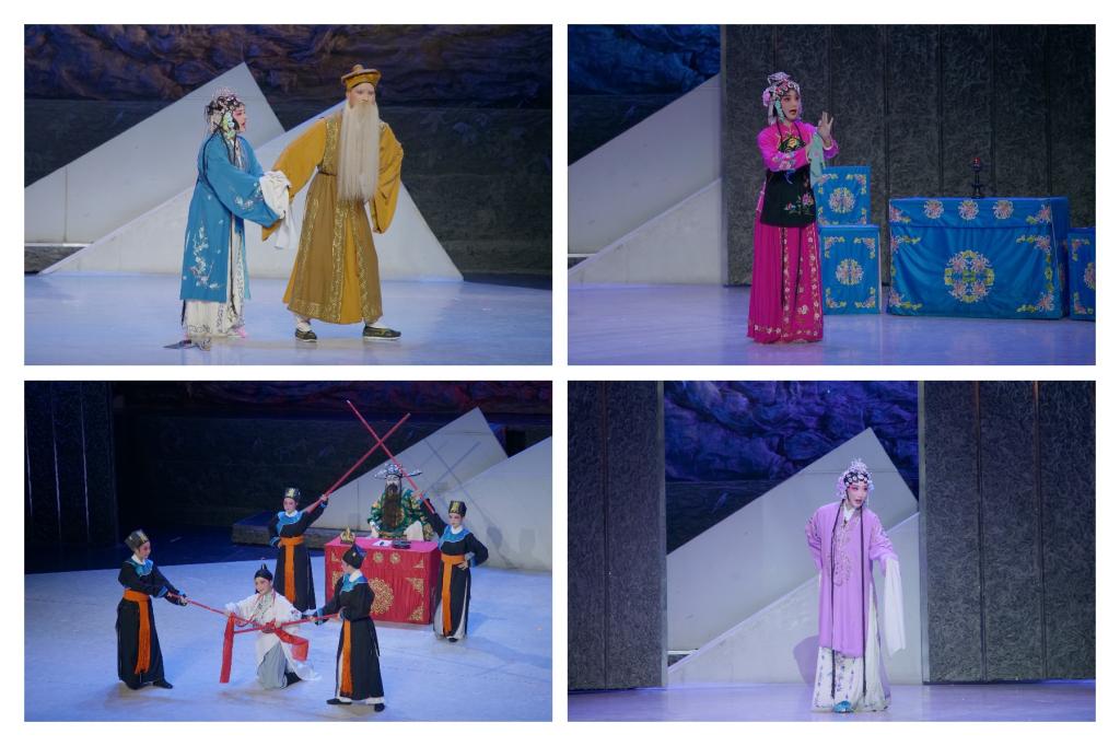 经典黄梅戏《天仙配》选场“满工”,清纯优美的唱腔与身段表演的完美结合,传达出人们对人间美好生活的憧憬与向往;新创黄梅戏《牡丹亭》“叫画”,活脱脱勾画出一个至诚书生的形象;黄梅戏《斩娥》《罗帕记》《谢瑶环》《鱼网会母》等经典选场中学生们娴熟的“四功五法”,在对人间正义呼唤的同时,将古代社会女性勤劳、善良、坚韧的性格形象有血有肉地展现在观众面前。
