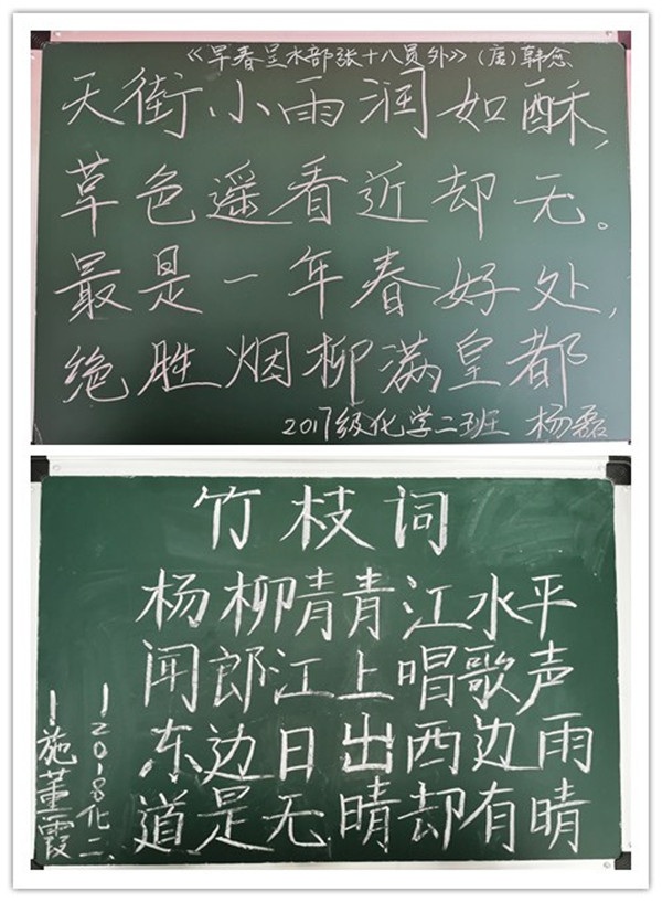 “三笔”包括硬笔、软笔和粉笔,“一话”为普通话。活动期间,各位选手沉着冷静,胸有成竹。硬笔书法,苍劲有力,入木三分;软笔各具特色,一撇一捺,收放自如;粉笔横平竖直,笔力劲挺,中庸中正,佳作频出。尤其是吴凯同学的三字,整体字体大气,书法笔走龙蛇,让人眼前一亮。