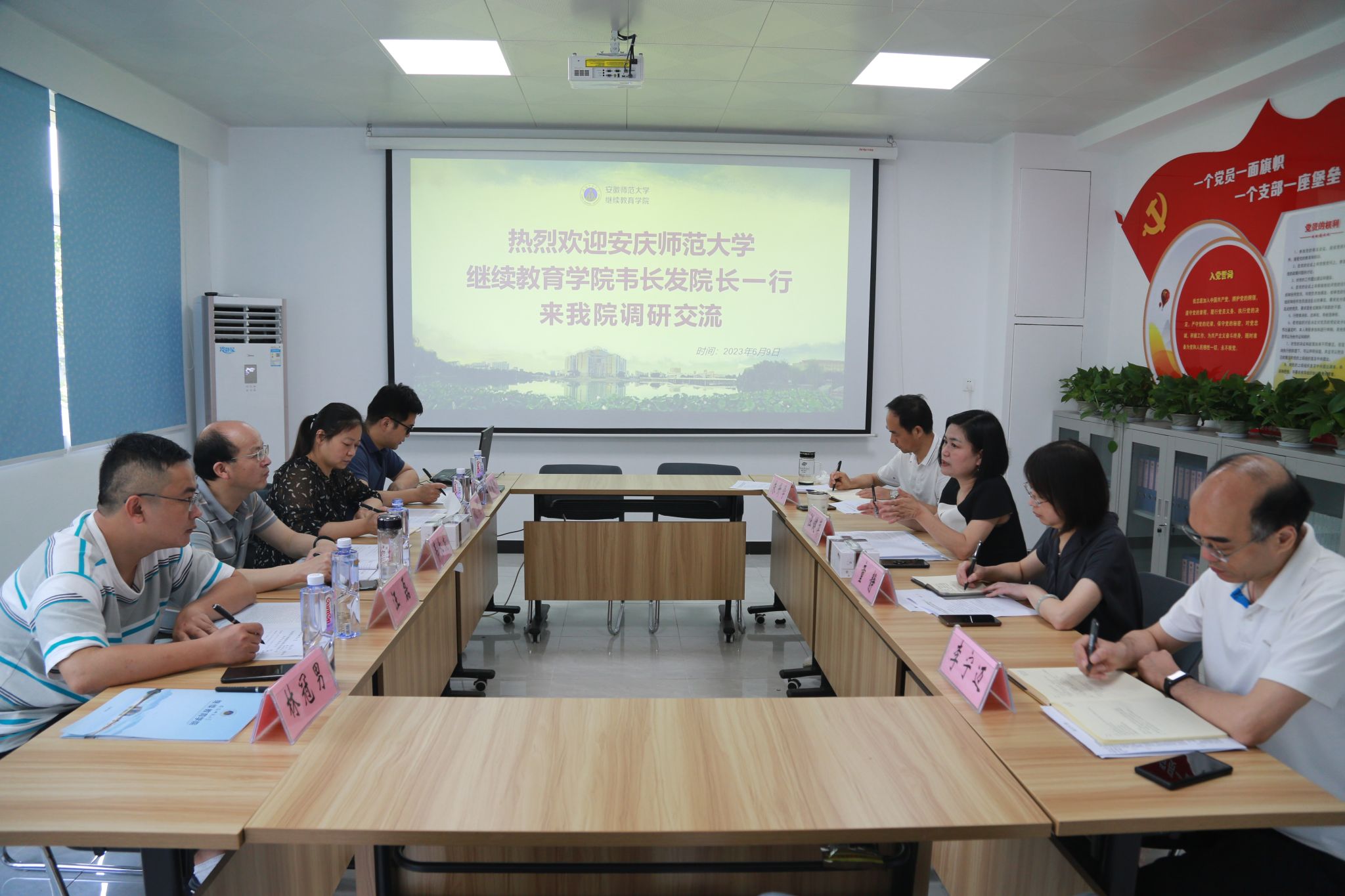 6月9日,继续教育学院院长韦长发、副院长代花及相关科室负责人赴安徽师范大学继续教育学院开展学习调研。安徽师范大学继续教育学院院长汪健萍等热情接待韦长发一行。