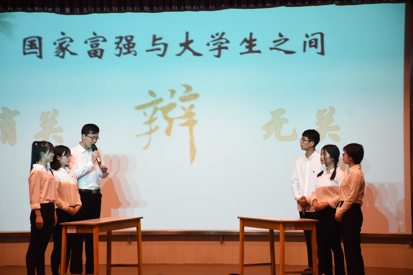 汉语言文学专业2015(2)班精彩的表演,幽默的语言,赢得了满堂喝彩。他们经过一个星期的辛苦排练,最终收获了满意的结果。班长桂牛洪说:“‘富强’这个概念很大,通过辩论赛形式使之更为具体,通过情景剧展现国家富强对我们的影响,这些创意都离不开指导老师和辅导员的帮助,以及同学们的刻苦与坚持。”