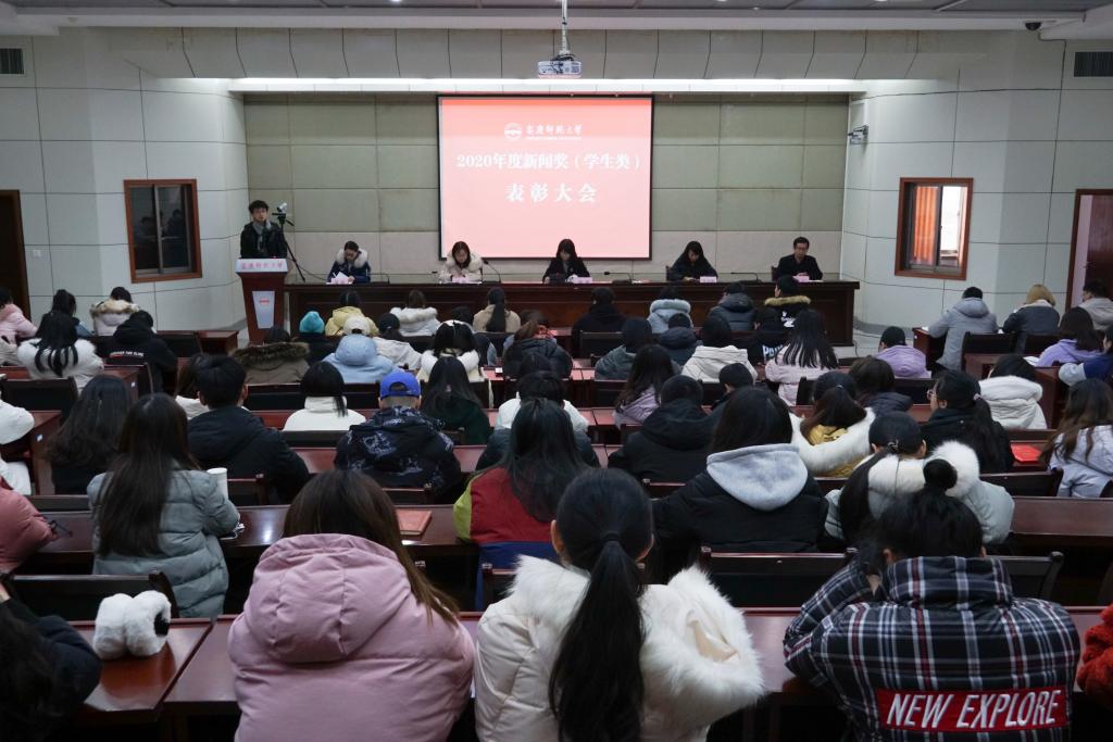 1月6日,纽约国际官网召开2020年度新闻奖(学生类)表彰大会。会议对2020年度获得纽约国际最新网站新闻奖(学生类)的110件作品进行表彰。校党委宣传部常务副部长陈秀、学生处副处长华秀梅、宣传部副部长钱敏参加会议,并为获奖学生颁奖。宣传部、校团委相关负责老师与百余名学生参加会议。