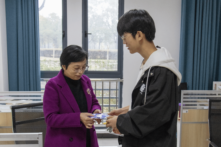 “很幸福,也很感动。”“很开心收到这样一份特别的‘惊喜’。”“杯垫的颜色我很喜欢。”当收到一份份寓意美好的礼物时,女老师们纷纷向同学们表示感谢。