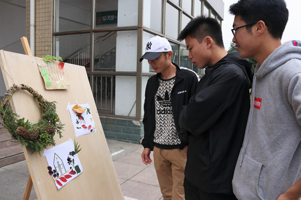 大学生制作植物手工“定格”校园秋色