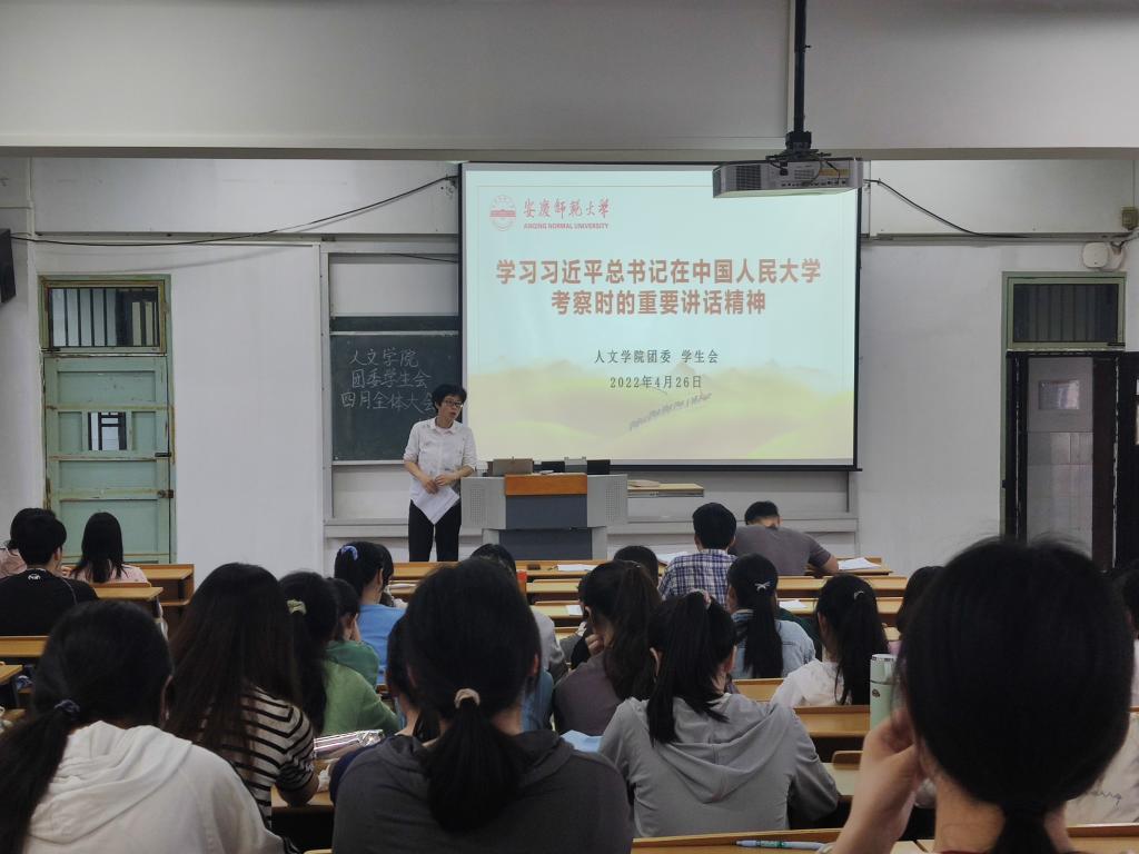 在五四青年节即将到来之际,习近平总书记在考察中国人民大学考察调研时发表的重要讲话,在人文学院团学干部中引发热议。广大师生纷纷表示要坚持党的领导,传承好红色基因,为实现中华民族伟大复兴而勇毅前进。