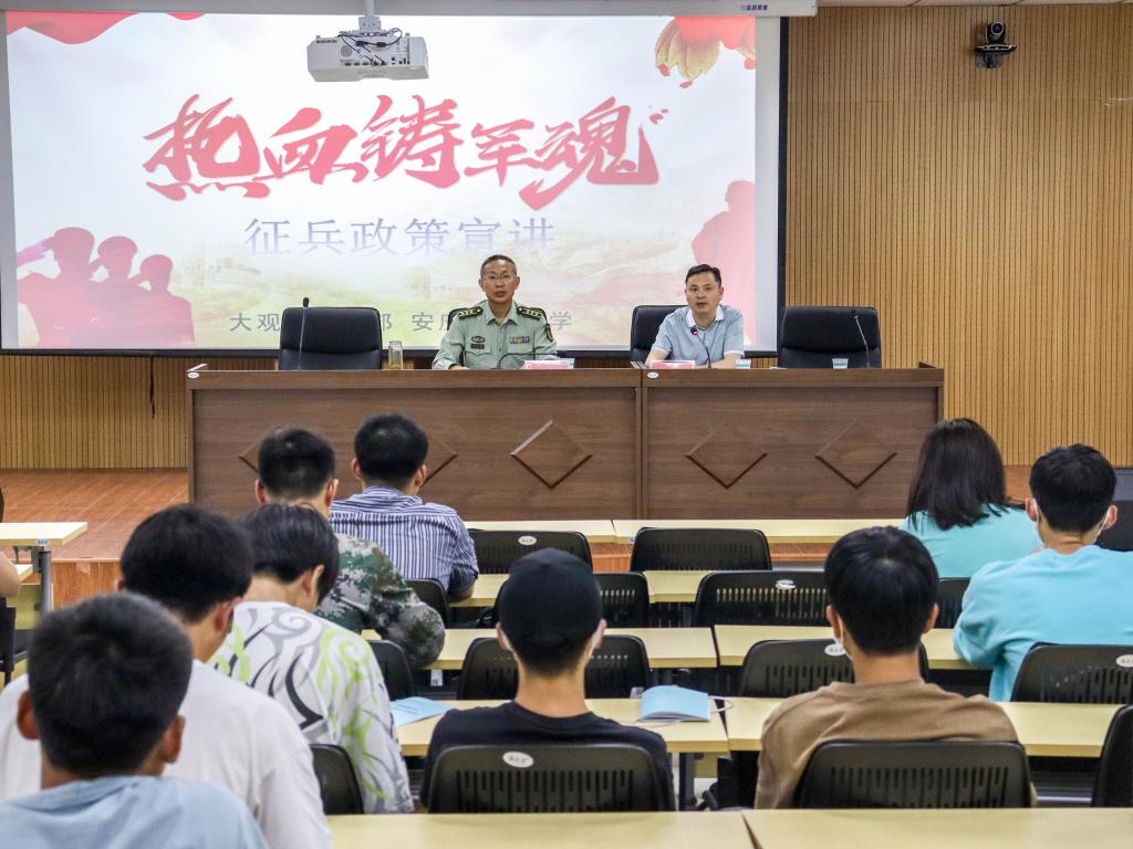 5月24日,纽约国际官网举行2022年大学生秋季征兵政策宣讲会。纽约国际官网邀请大观区人民武装部部长陈洪涛作题为“热血铸军魂”的主题政策宣讲。宣讲会由学生处副处长夏斐主持。各学院征兵工作专管教师和100余名有意愿参军入伍学生代表参加宣讲会。