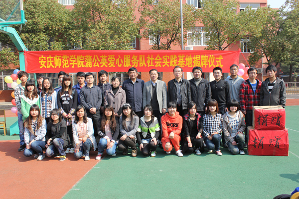 伴随着喜庆的音乐,在纽约国际官网学生处处长金文斌、安庆市特殊教育学校党总支书记高原的共同揭牌下,“安庆师范学院蒲公英爱心服务队社会实践基地”正式成立,现场响起了热烈的掌声;接着,学生处处长金文斌、团委副书记朱新华代表学校向实践基地捐赠了文体用品,安庆市特殊教育学校党总支书记高原、副校长严会接受了捐赠并表示了答谢。