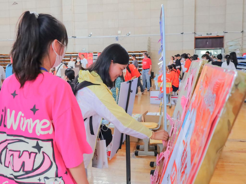 设计活动展板、购买爱心卡纸、分配制作信件……据活动负责人、思想政治教育专业2020(1)班的戴欣怡介绍,学院今年延续了以往的传统,除了组织志愿者开启“一站式”迎新服务,引导新生“无忧”入学以外,还为大家准备了贴心又暖心的手写信。“每一位新生在完成报到事宜之后,都可以在展板处领取一封独家信件。”信件内容涵盖入学注意事项、美食企划攻略、学习建议指南等内容,都是学生们在校园生活中总结沉淀出的“经验之谈”。而当一封封寄托学长学姐叮嘱关怀的爱心信交到“小萌新”们手中时,也收获了他们的一致点赞和好评。