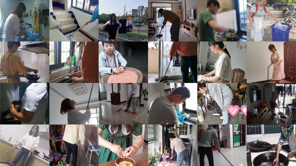 亲手制作美食、打扫卫生、清洗厨具……收到消息后,学生们纷纷忙碌起来,帮助家长做各类家务,并将劳动成果拍照分享。