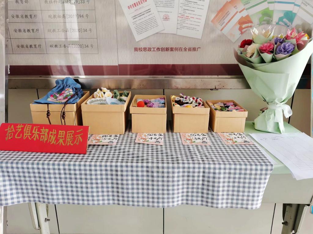 4月25日至5月8日,拾艺俱乐部举办五一劳动手作艺术展览,各色图案的杯垫与发箍、制作精巧的香囊、栩栩如生的纸折鲜花等吸引众多老师与同学驻足观赏。