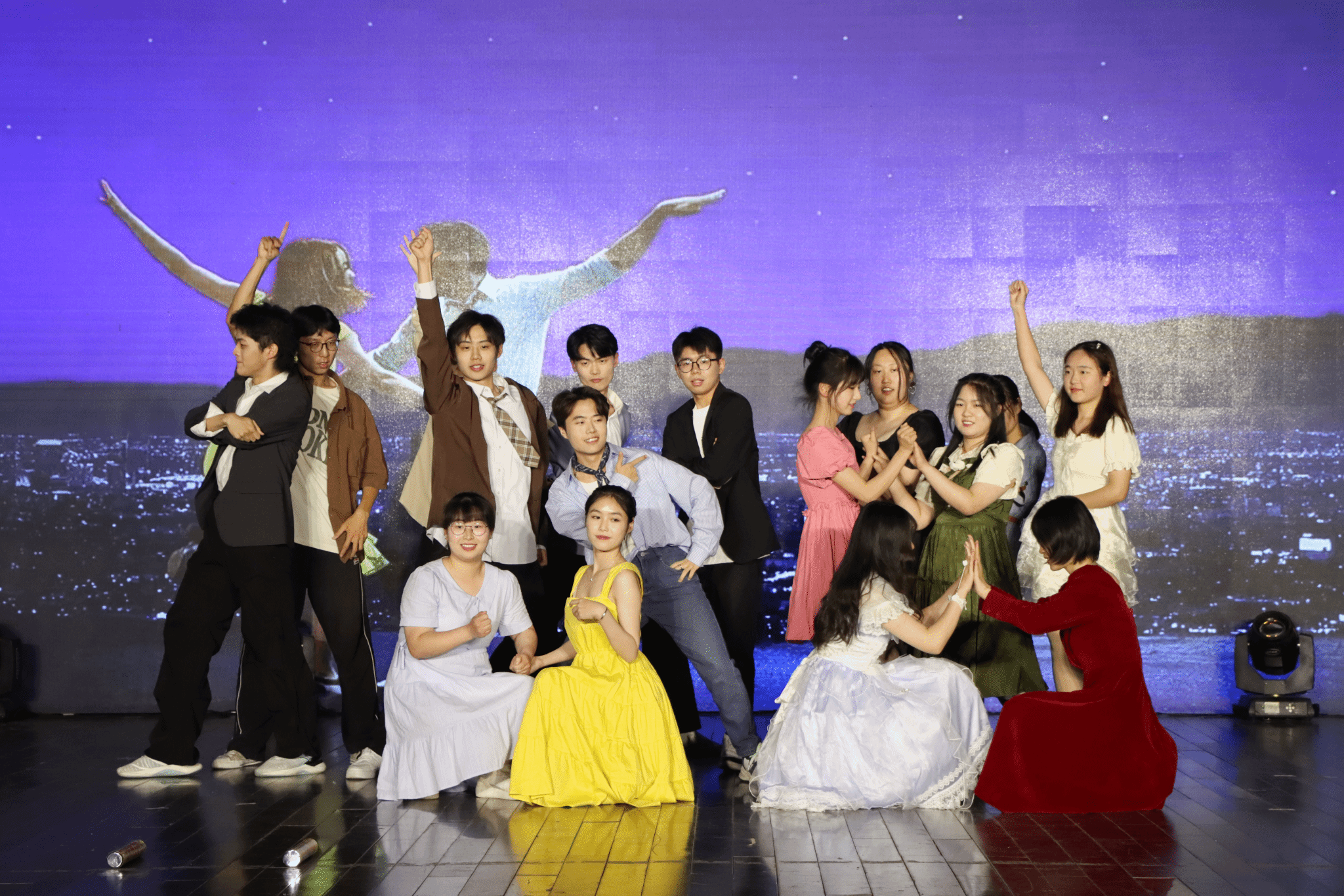 “感觉在看迪士尼的公主演出!”“简直不输专业舞团的演出!”……舞者轻舞裙摆,在台上旋转、变换队形,音乐剧《爱乐之城》讲述着少女的追梦故事。谢幕时的比心造型引得全场掌声雷动。英语(师范)专业2021(7)班的马俊俊表示,为了在舞台上更好地呈现节目效果,她和演艺团成员一起排练了两个多月。“这个节目关于梦想,也关于勇气,我们想借节目让学长学姐在离校后也能带着勇气,去追求梦想。”