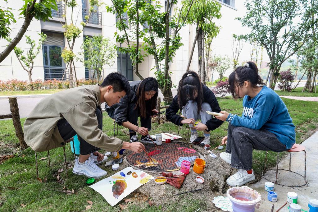 短短两天时间,150余位学生积极创作,用34幅创意井盖画为校园环境添上绚烂一笔。美术学专业2021级(4)班的学生谢鑫一听说活动就召集队伍报名参加,“这个活动很有意义,当我们完成作品的那一刻,真的成就感满满。”他说,画井盖画不仅锻炼了自身专业能力,还美化校园环境,“如果以后还有这种活动,我一定要参加。”
