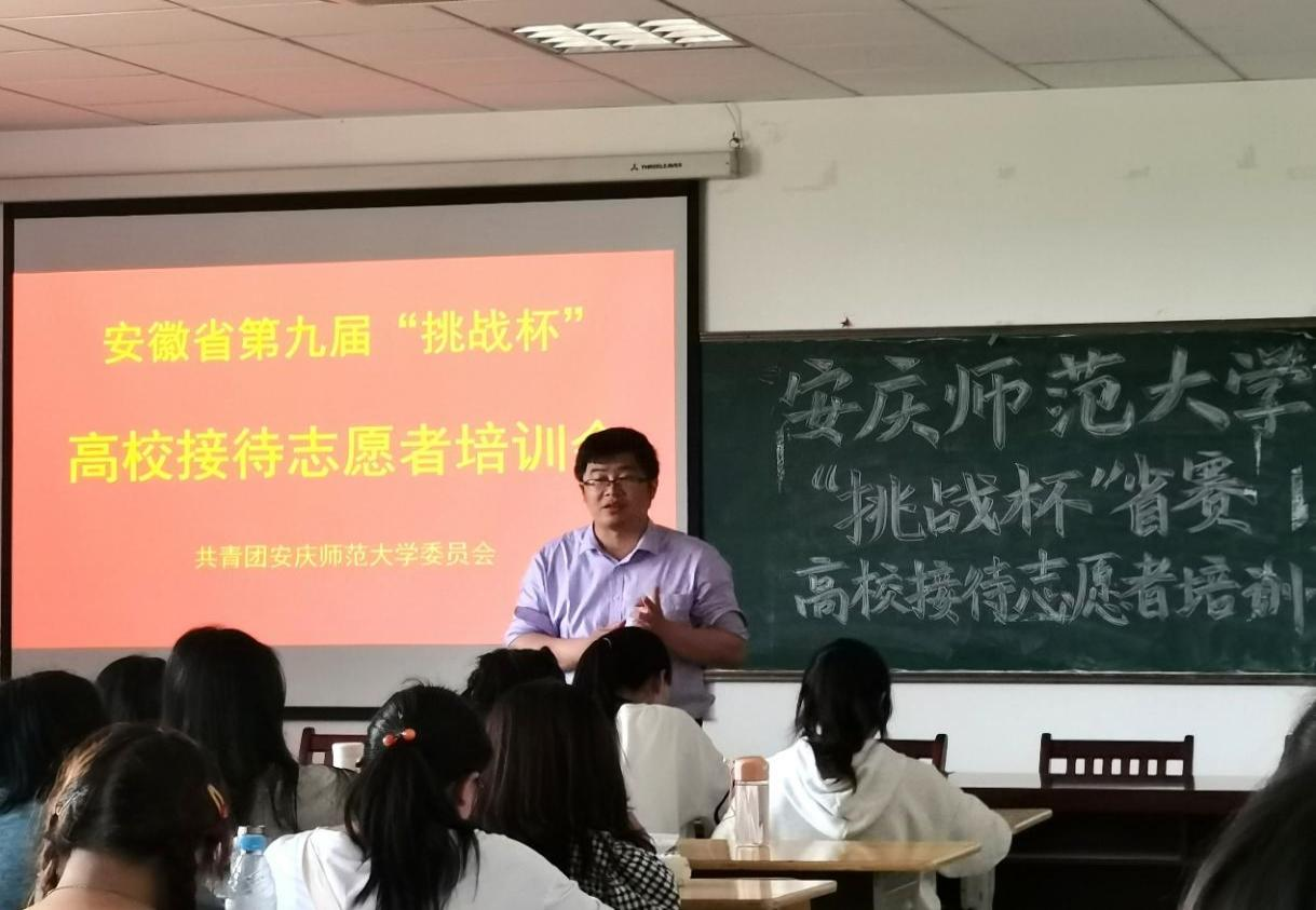 5月8日下午,安徽省第九届“挑战杯”高校接待志愿者培训会在教师教育学院J305教室顺利举行。校团委严峻老师受邀出席本次培训会并担任主讲,共有来自各院系的102位学生参加此次培训。