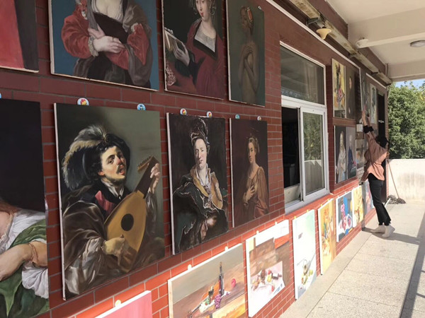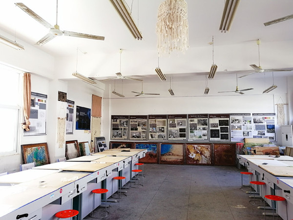 各班级同学在辅导员老师的指导下,群策群力,精心布置和装扮教室。美化后的教室干净整洁,美观大方,个性鲜明。专业课工具区摆放整齐,收纳有序;宣传栏别具一格,体现了班级文化和风采。最吸引眼球、富有特色的是每个教室的展览区。各班结合专业特色,将优秀的课程作品展示在教室内,既美化了环境,又体现了良好学风,传递了奋发励志的青春正能量。如油画班将本班同学创作的优秀油画作品装裱在墙面;产品设计班的展览区摆放了同学们亲手制作的玩偶、机器人模型、房屋模型;有的教室摆放着由碎石、铁丝、树皮等综合材料制成的作品,大气新颖的作品让人震撼;还有的教室展出了优秀的版画、国画、水彩画、陶艺、雕塑、书法、岩彩画、手绘、编织工艺品、平面设计和环境设计等作品。