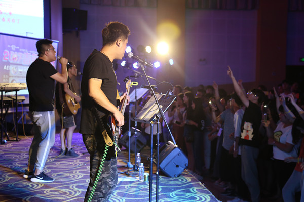 电吉他、键盘的声音回旋着,架子鼓鼓点渐入,随着熟悉的旋律响起,“AE86”乐队开唱惊艳全场。《定西》、《关于郑州的记忆》、《天空之城》……一首首李志的歌在乐队的演绎下更具特色和风格,不少观众跟着节奏一起挥手、跳跃、合唱。法学专业2015级(1)班的周兴全在看完演出后说:“虽然我以前很少听李志的歌,但今晚乐队的演唱真的让我融入到了歌曲中。”