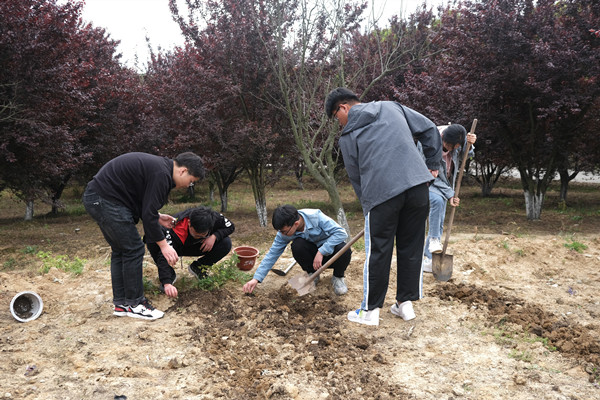 活动开始前,50余名学生按照种植植物的不同种类进行分组,每一组六到七人,分别参与种植番茄、草莓、向日葵和甜瓜。挖坑、填土、浇水,每组成员分工明确、相互配合、互帮互助,大家在劳动的经验交流中逐渐熟悉。