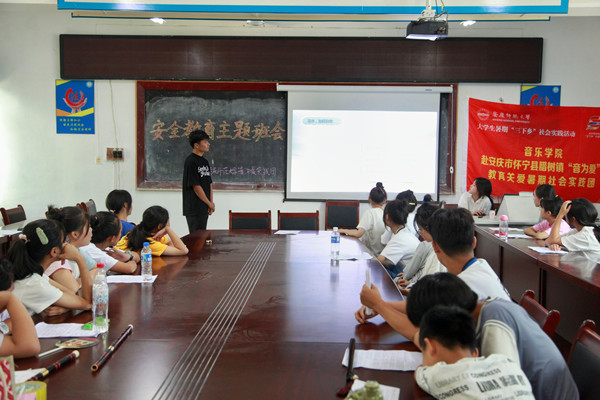 “什么是溺水?”“溺水后我们如何自救?”“被人欺负了怎么办?”数个问题“抛砖引玉”,拉开了安全教育的帷幕。7月18日,音乐学院“音为爱”教育关爱暑期社会实践团为安徽省怀宁县腊树初中的30余名“留守”学生讲一场主题安全教育课。实践团成员结合图文实例,现场动作示范,将单纯的“讲道理”变为“沉浸式”反思,让学生们对常见的安全防范和自救知识更加入脑入心。