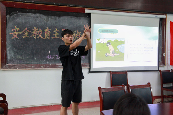 实践团队长杨正鹏从溺水的急救方法、游泳的注意事项、落水严禁错误施救以及如何自救四个方面介绍了如何防溺水,并要求大家:不到无安全设施、无救援人员的水域游泳;不擅自与他人结伴游泳,不擅自下水施救等。