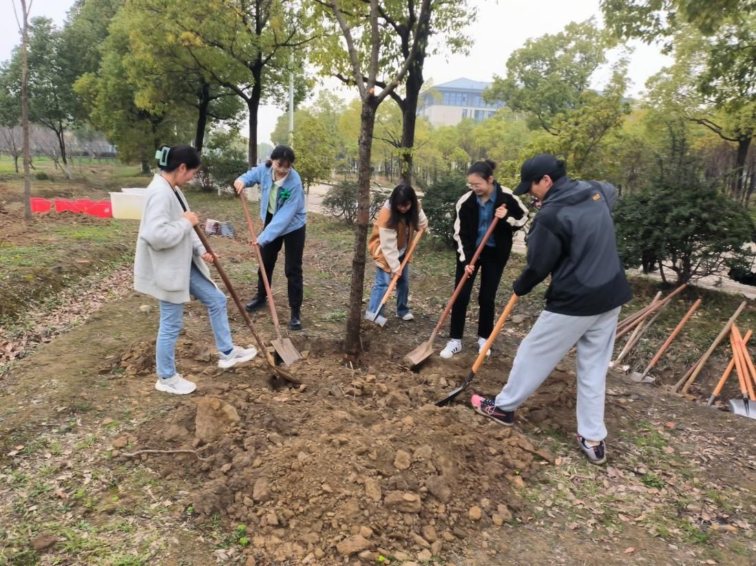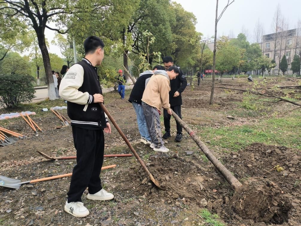 活动在学校东围墙樱花园举办。植树活动现场,同学们个个热情高涨,干劲十足,从搬运树苗,到挥锹刨土,从扶苗栽种,到浇水灌溉,大家分工明确,配合默契。活动结束后,支部党员交流植树心得,并约定好定期前往植树地点关注树苗生长,定期松土浇水。