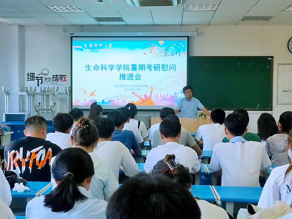 8月8日,生命科学学院在G102举办暑期留校生考研慰问推进会,深入了解留校考研学生的思想动态和学习生活情况,切实做好服务保障工作。学院党委副书记张辉和团委负责人参加会议。