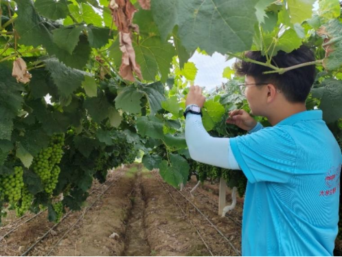 实践团部分成员专门前往该县特色农业基地了解农业农村现代化实况,分别对当地葡萄养殖和芦笋培育展开了实地调研,了解当地“一村一品”标志性农产品发展的基本状况,认识当地部分农业进行的“党建+”创新生产模式。实践团成员还在基地负责人允许后参与到了葡萄掐尖活动之中去,尽自己所能为果农提供帮助,为果农工作提供支持。