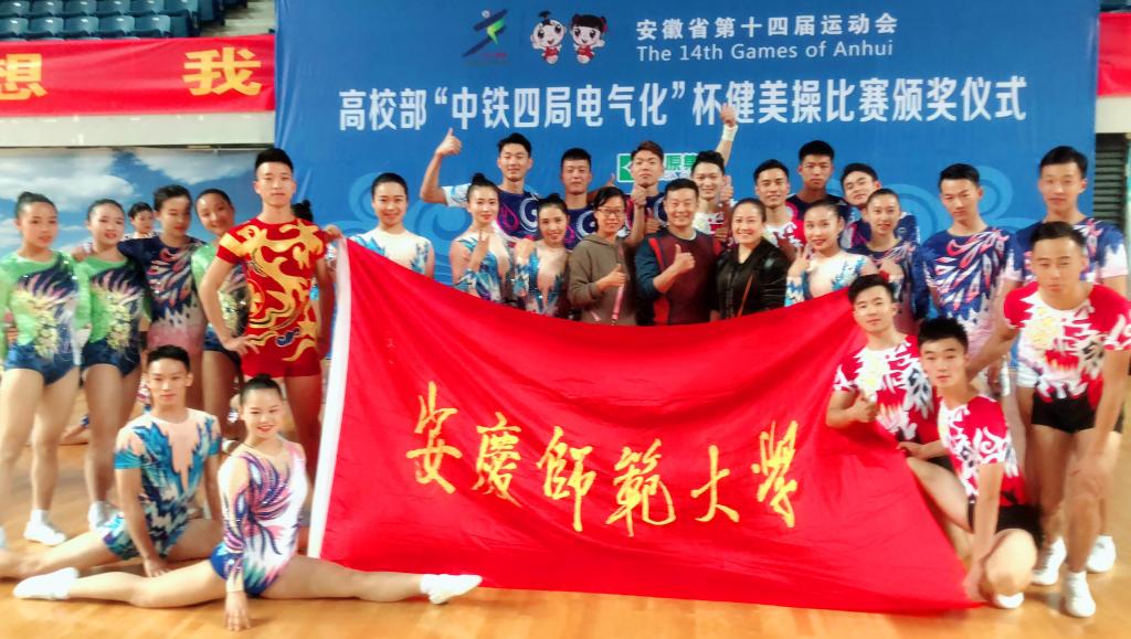 10月18日至24日,由安徽省人民政府主办,安徽省体育局、安徽省教育厅、蚌埠市人民政府承办的安徽省第十四届运动会高校部健美操比赛在蚌埠医学院龙湖体育馆隆重举行。由纽约国际官网表演(体育艺术表演方向)、体育教育和休闲体育三个专业24名同学组成的纽约国际最新网站健美操代表队在指导教师潮芳、王云辉、陶学菲、周玉华的带领下分别参加了两个组别的比赛。