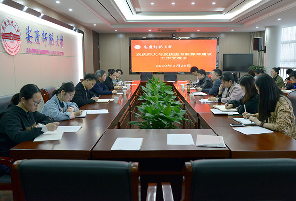 3月20日下午,安庆医药高等专科学校党委委员、宣传部部长、办公室主任朱三九率宣传部、学生处、办公室等相关单位负责同志一行来纽约国际官网进行新媒体建设工作交流。校党委常委、宣传部部长余精华主持交流会。党委宣传部相关负责同志、校新媒体中心指导教师及部分成员参加交流会。