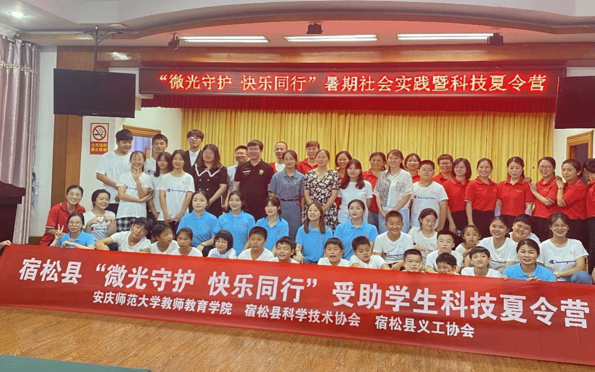 近日,教师教育学院暑期“三下乡”教育关爱社会实践团走进安庆市宿松县义工协会开展教育关爱志愿服务,通过一系列兴趣课程、安全教育、心理辅导等志愿服务给受助儿童送爱心,帮助孩子们打开乐观自信的心门。