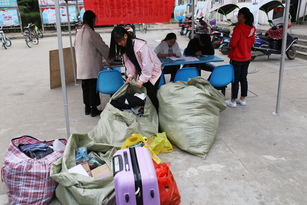 “这些衣物是要捐去哪里呢?”“同学,你们的活动什么时候结束?我的宿舍里还有一些衣服,一会就拿下来。”“学长,我的军训服和鞋子可以捐吗?这些我都已经洗过了。”这些问题在捐赠现场不绝于耳。