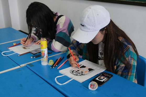 活动伊始,每位前来参与的同学按顺序领取所需用品:纸袋、彩铅、削笔刀、橡皮……一切准备就绪后,开始手绘DIY的创作。