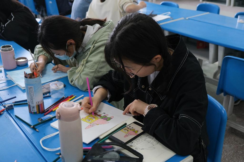 Q版的白雪公主、吐泡泡的海绵宝宝、嘟嘟嘴的漫画啸天……一个个活灵活现的卡通漫画人物“跃然袋上”。4月17日,大学生绘梦想手绘协会举办的纸袋手绘DIY活动在生命科学学院开展,共30余名学生参加。