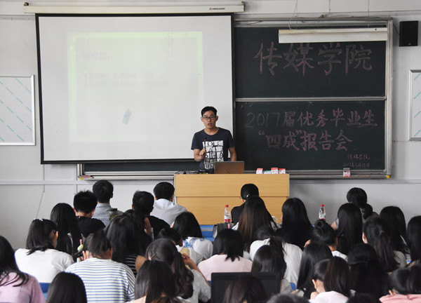 “时光荏苒,岁月如梭,又是一年毕业季……”6月18日上午,传媒学院举办了2017届优秀毕业生四成报告会。